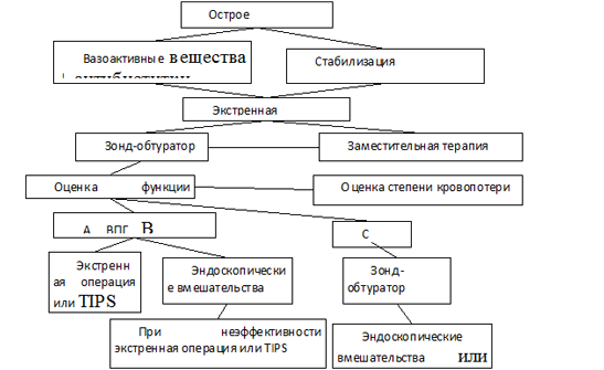 1. предоперационная подготовка при операции в плановом порядке: коррекция функциональных нарушений печени (для больных ЦП) и лечение трофических нарушений в слизистой пищевода и желудка. При наличии рецидивов пищеводно-желудочного кровотечения у больных с ВПГ и ЦП группы А и В вопрос о срочной операции должен быть решен в течение 12-24 часов.