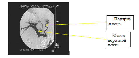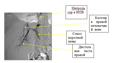 4. Доступ в воротную вену. Для облегчения этого этапа операции целесообразно использовать УЗИ наведение пункционной иглы и карбоксипортографию (рис.16 и 17).